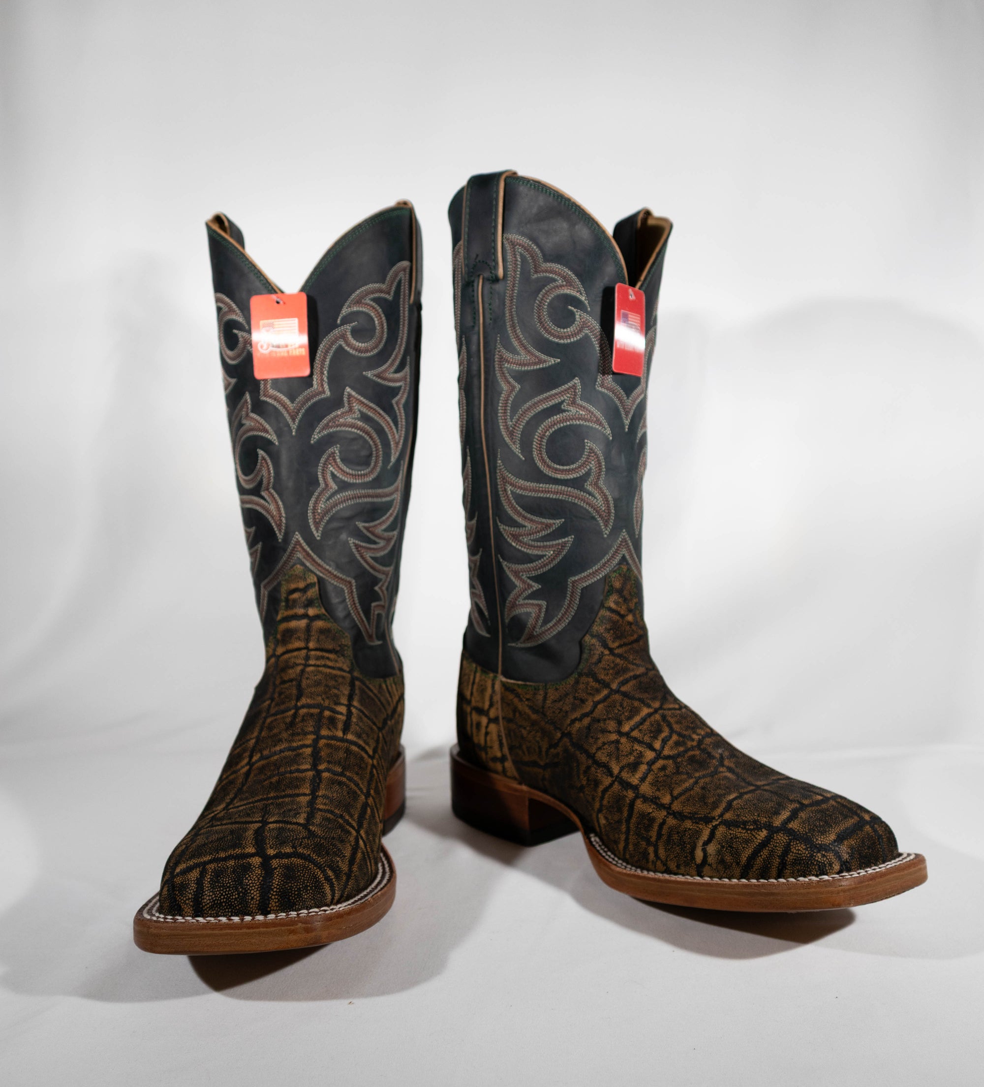 Saddle, Tan & Black elephant Justin boots #PO1929
